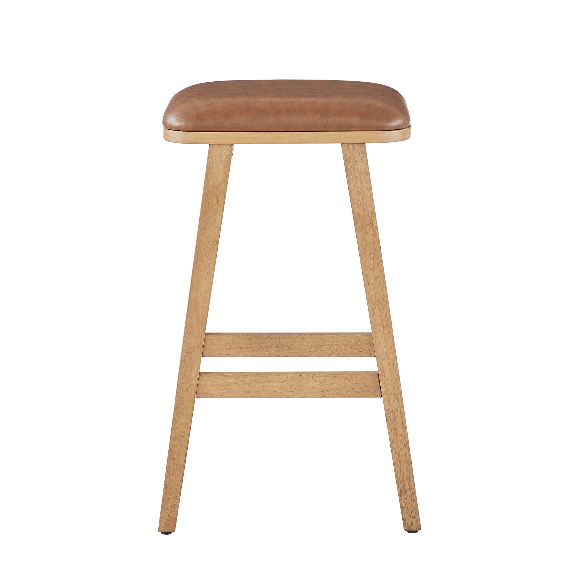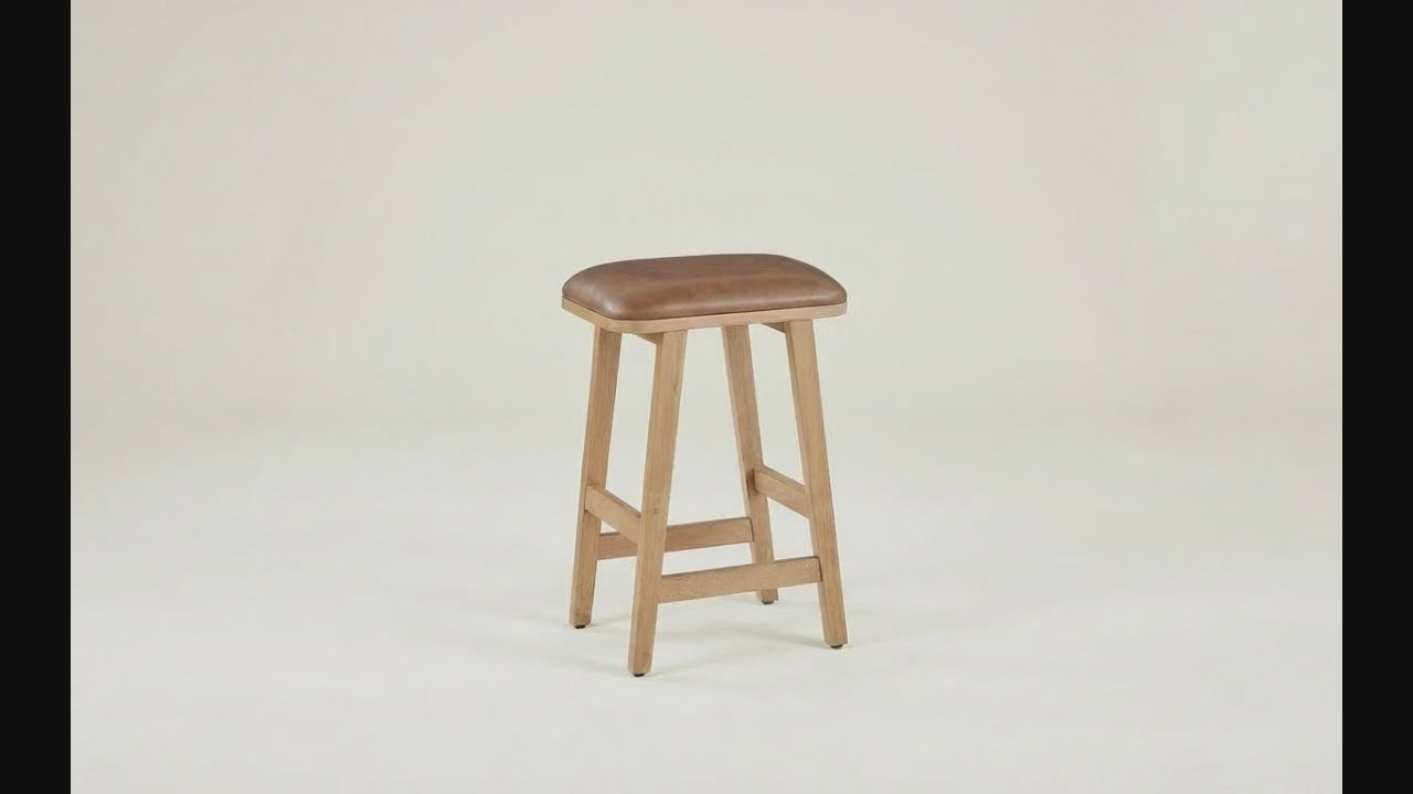 Expertly crafted with a solid wood frame, this upholstered saddle stool brings modern style and comfort to your counter. The vegan leather cushion is not only stylish, but also easy to clean. With easy assembly, this stool is the perfect addition to any kitchen or bar area.